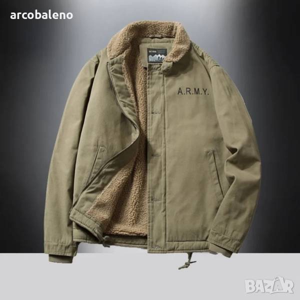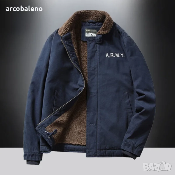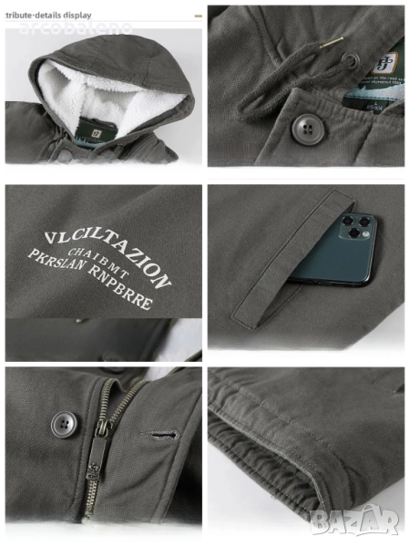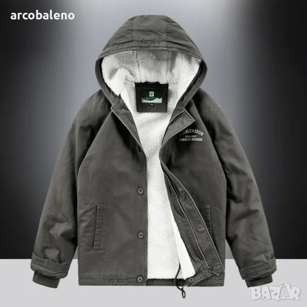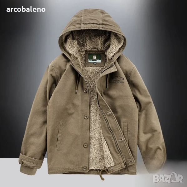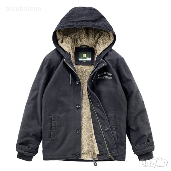 Мъжко зимно яке с удебелена вълнена подплата и качулка