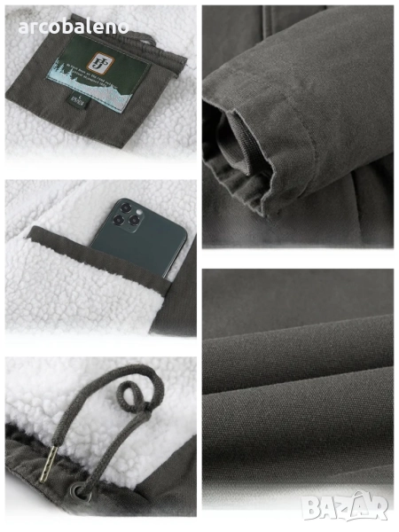 Мъжко зимно яке с удебелена вълнена подплата и качулка, 6цвята