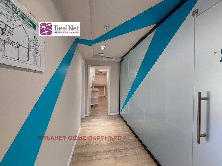 Офисната част се простира на ет. 2 и 3 и е необзаведена. На ет. 2 /259,13 кв.м./ са обособени пет работни помещения с различна квадратура, кухненски бокс, два санитарен възела, тераса. На ет. 3 /257,88 кв.м./ пет помещения, приемна с кухненски бокс, три тераси, два санитарни възела. Възможност за преустройства, според изискванията и нуждите на ползвателя.