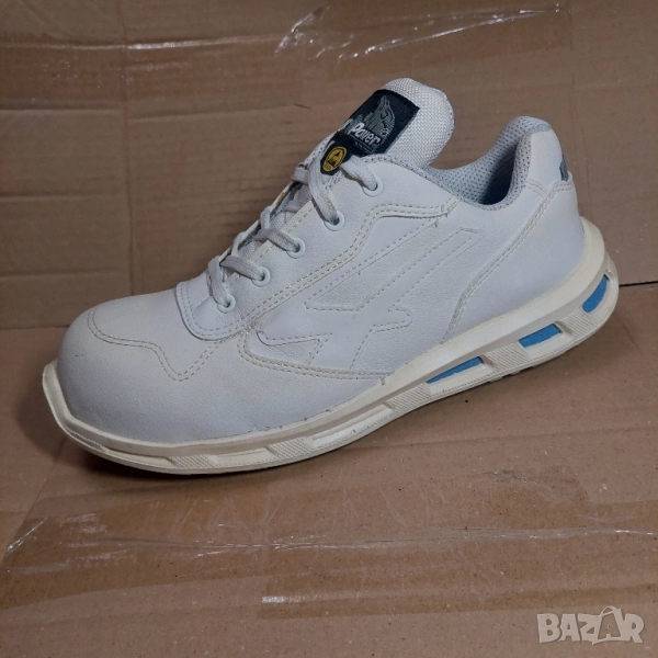 Бели ниски, леки и удобни предпазни обувки U-Power от серията Red Lion, изцяло „без метал“, с нова горна част Safety Dry, композитно бомбе, водоотблъскващи, подплатени найлонови мехове, противоплъзгаща и PU/PU Infinergy подметка, S3 CI SRC ESD подметка.