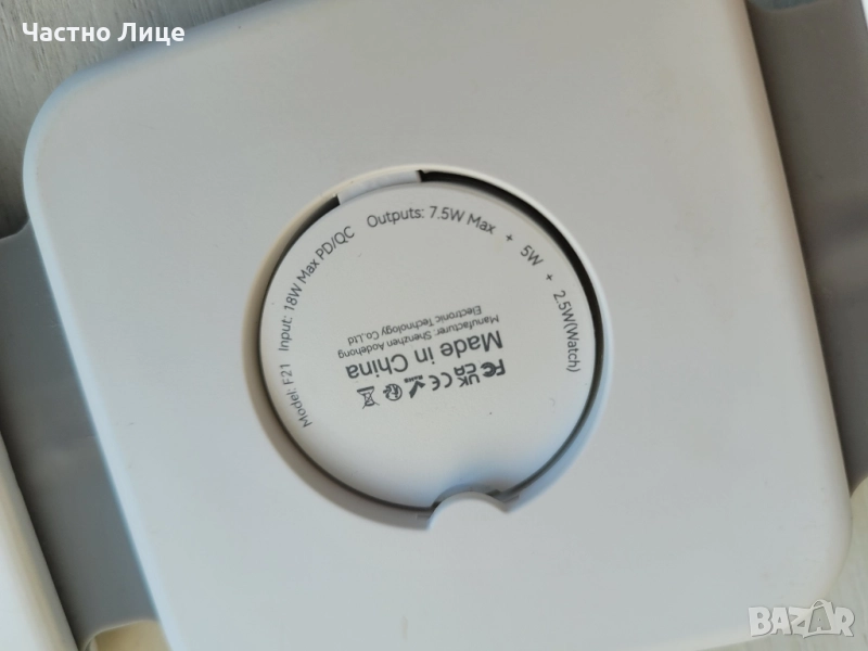 Зарядното е в перфектно състояние. Може да зарежда телефон, часовник и слушалки едновременно.