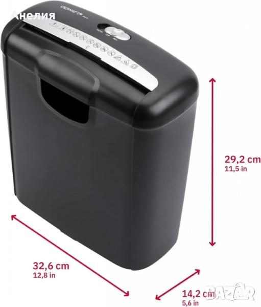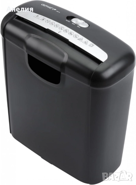 Шредерът ви позволява да нарежете до 6 листа хартия на ленти с ширина 7 мм едновременно. Мощният шредер лесно раздробява кредитни и пластмасови карти. Благодарение на функцията старт/стоп, може да се управлява и с една ръка. Главният превключвател на шредера ви позволява да избирате между режими Автоматичен, Изключен и Обратен. Контейнерът за събиране на шредера има изключително голям капацитет от 10 литра хартия и отвор, за да се вижда нивото на пълнене по всяко време.