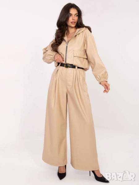 Дамски кожени панталони с плисета и колан