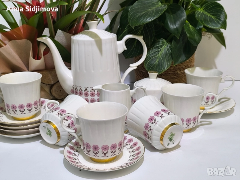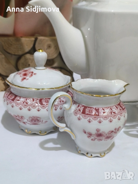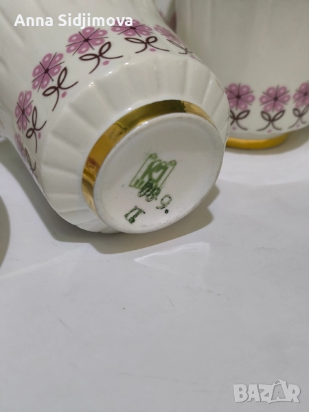 е един от все по-редките сервизи.Маркировката е от началото на производството на костен порцелан във Видин.Страхотен🌸