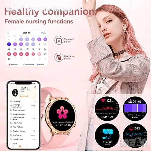 Нов Дамски смарт часовник 1.35" с мониторинг на здравето и фитнес функции