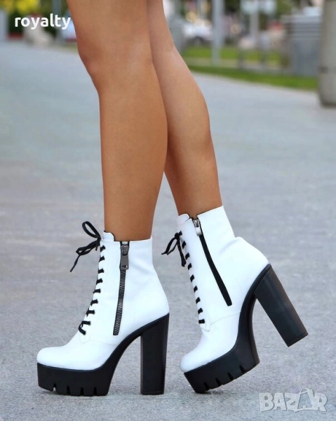 Боти на ток - бяла кожа с черно ходило → Обява 52162400