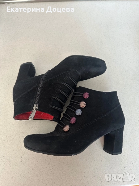 Боти с цип, декоративни връзки и червена подплата, удобен ток. Прекрасно допълнение към гардероба!