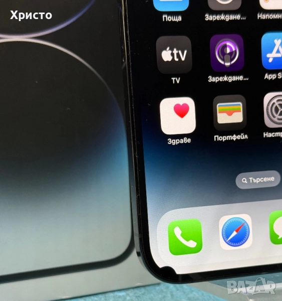 Телефонът е в перфектно състояние — винаги е бил използван с предпазни протектори отпред, отзад и дори върху камерите, което е запазило визията му почти като нова. Работи безупречно с всички оператори. Никога не е бил на сервиз и по него не е извършвана никаква намеса — нито хардуерна, нито софтуерна, нищо не е сменяно. Има само една единствена козметична забележка, която се вижда на снимките — малка черна точка долу във ъгълчето на екрана. Тя не се разраства и не влияе на работата на телефона по никакъв начин. Батерията държи отлично, като реалният ѝ живот може да се види на една от снимките. Телефонът се предлага в комплект с оригиналната кутия, без зарядно. Без бартери!!!