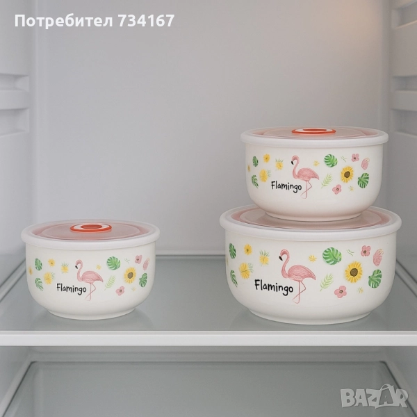 Комплект от 3 порцеланови купи с вакуумни силиконови капаци – SD144