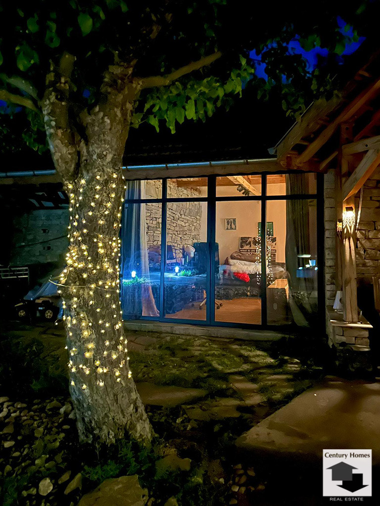 Къщата се простира върху 190 кв. м. жилищна площ разпределена между два етажа. На първия етаж са разположени просторна дневна с камина, оборудвана кухня с трапезария, уютна спалня, котелно помещение, баня с тоалетна, втора кухня и още една по-малка дневна. Вътрешно стълбище отвежда до втория етаж, където има още две комфортни и светли спални, баня с тоалетна и тераса.