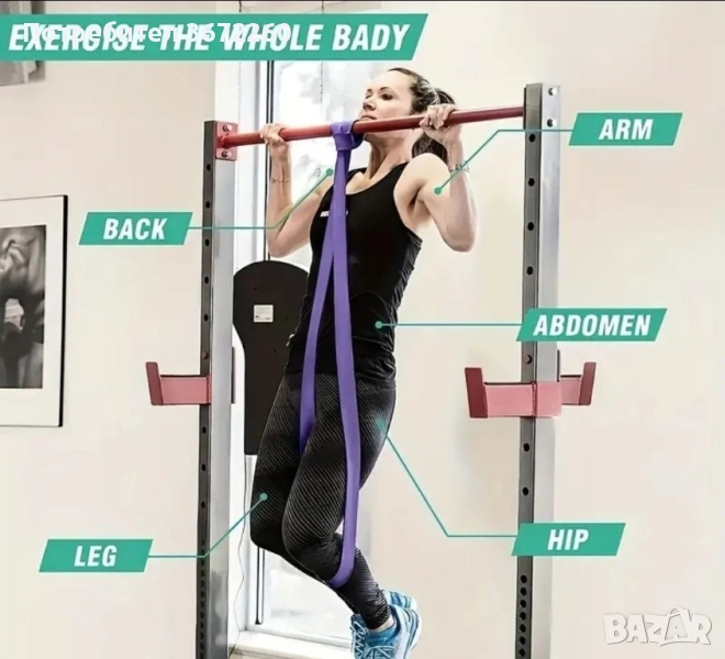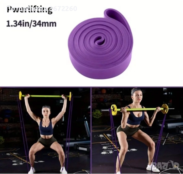 Лилав Плосък Фитнес Ластик с до 45 кг Съпротивление Тренировки Йога Стречинг Упражнения → Обява 52162855