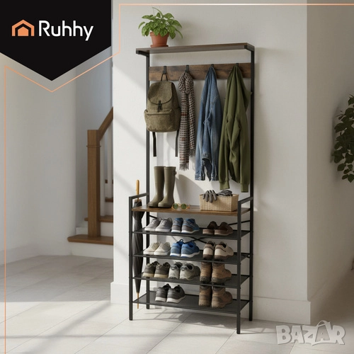 Съчетайте ред, практичност и индустриален стил с това портманто Ruhhy – идеалното решение за подредено антре, което изглежда прекрасно и спестява място.
