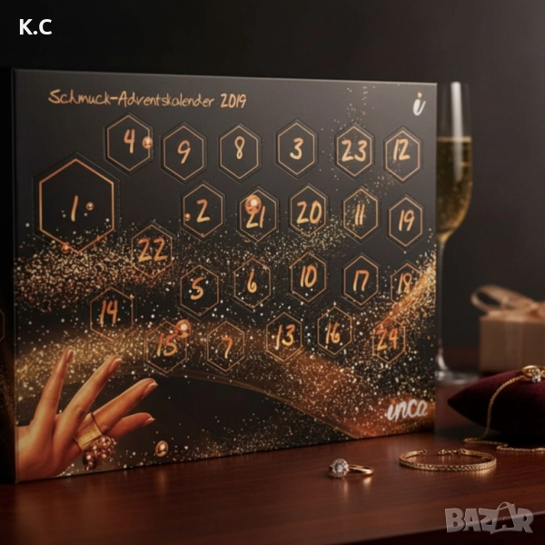 24 изненади – гривни, висулки, обеци и пръстени, подредени в стилна кутия.