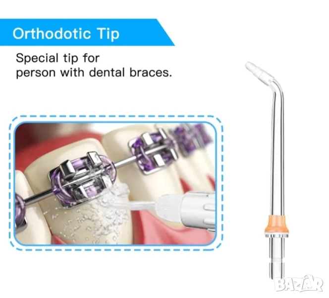 Електрически зъбен душ, четка за зъби, почистване на език, брекети