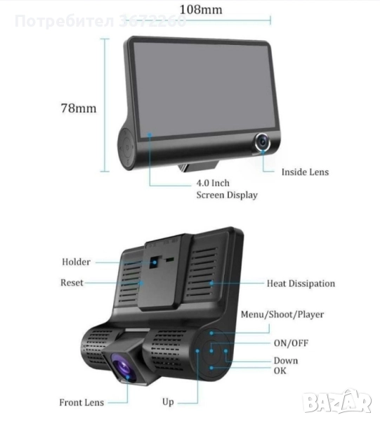 - Камерата за запис на пътниците в купето е много подходяща за таксиметрови шофьори и всички, за които това е важно.