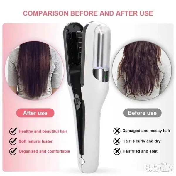 Това е устройство, което не изтънява, не нанизва и не оформя. То премахва цъфтящите краища и изгорелите краища, оставяйки косата по-копринена, по-здрава и по-лесна за оформяне!