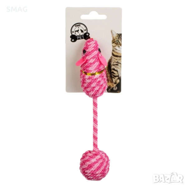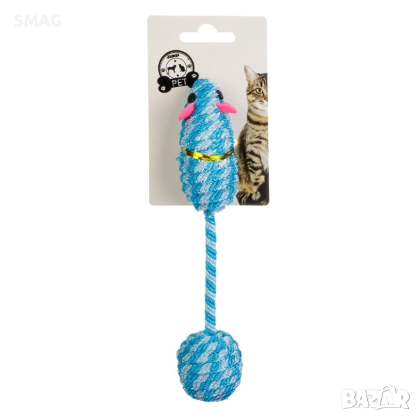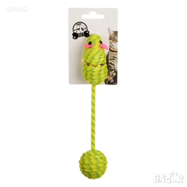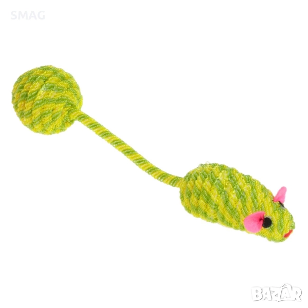 Забавна интерактивна играчка за котки във форма на мишка с дълга опашка от корда и топче. Стимулира ловните инстинкти и активността на домашния любимец. Подходяща за самостоятелна или съвместна игра, осигурява часове забавление и движение.