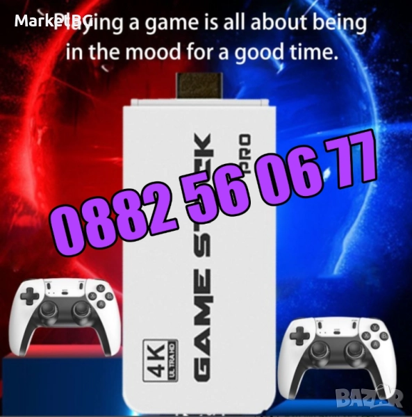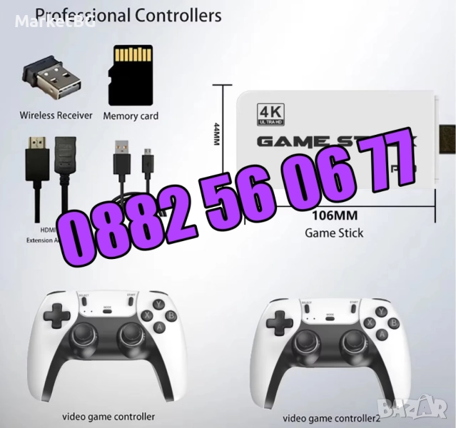 Игрова конзола Retro Console M15 4K Pro Game Stick, 64G, 30 000 видео игри, 9 емулатора, 2x безжичен контролер 2,4 GHz