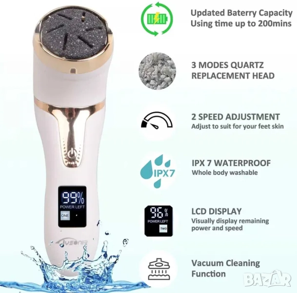 Електрическа вакуум пила за пети и педикюр 3 в 1 , водоустойчива + ПОДАРЪК