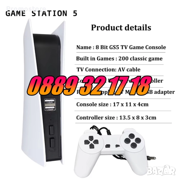 Телевизионна ретро игра, конзола Game Station GS5 с вградени 200 8-bit игри и два джойстика