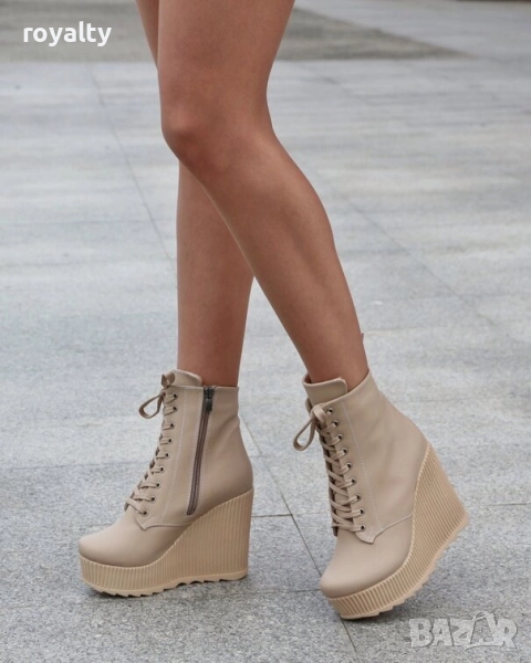 Боти на платформа - бежова кожа → Обява 52163619