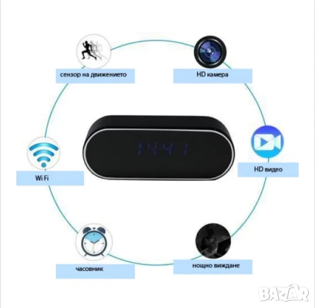 WiFi скрита камера в настолен часовник, будилник, видеонаблюдение