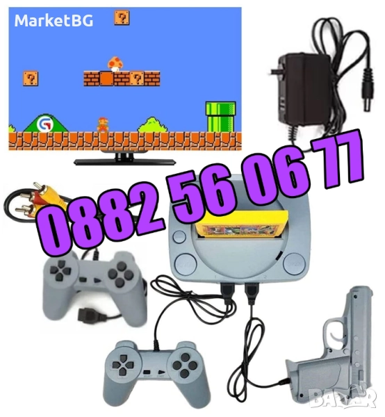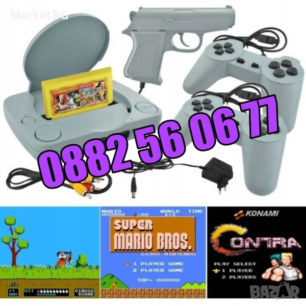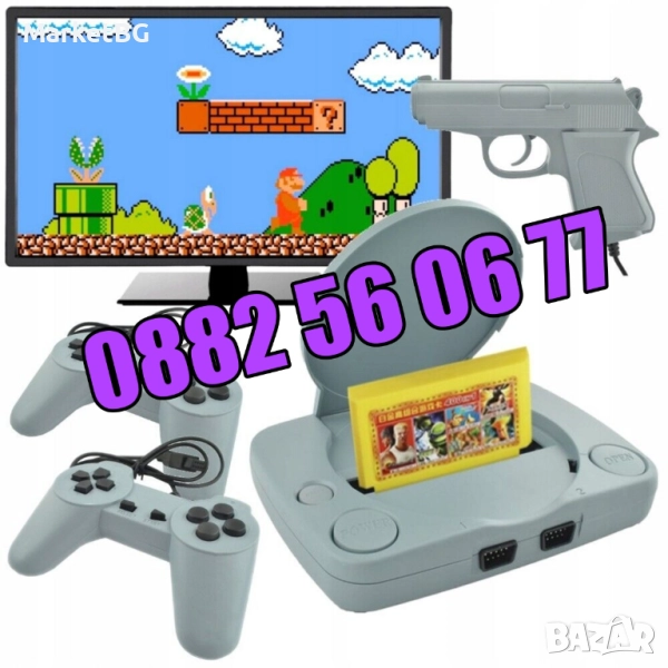 Телевизионна игра с вградени игри, ретро конзола с два джойстика и пистолет