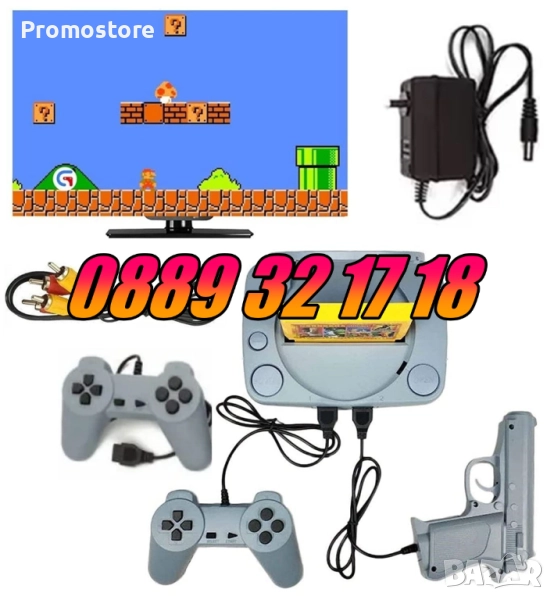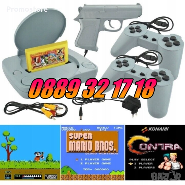 Телевизионна игра с вградени игри, ретро конзола с два джойстика и пистолет