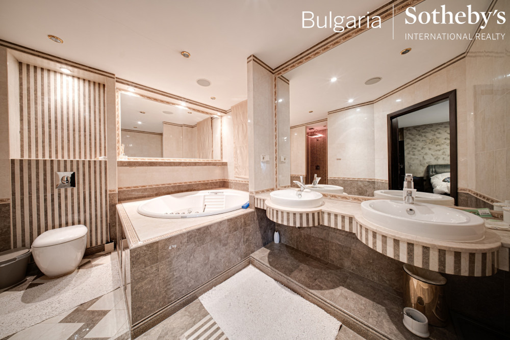 По нотариален акт апартаментът е със следното разпределение: антре, тоалетна, две бани с тоалетни, коридор, четири спални, кухненски бокс, дневна с трапезария, пет тераси.