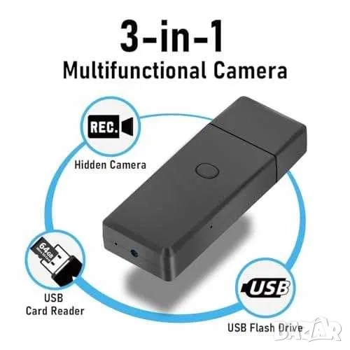 USB мини шпионска камера , която изглежда и работи като флаш устройство. Цикличен видеозапис, синхронизация на аудио с видео. Предназначена за срещи, адвокати, журналисти и частни детективи.
