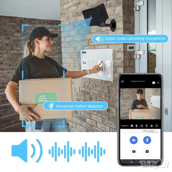 Мини Камера за наблюдение, Full HD 1080P, нощно виждане