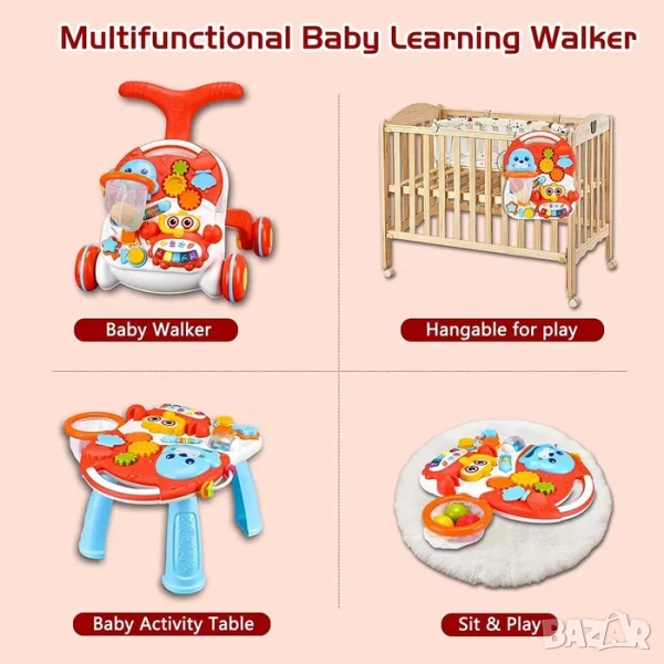 2в1 проходилка - детски уокър и масичка, интерактивна играчка - НОВИ