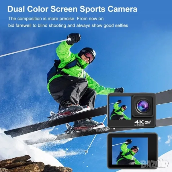 4K/60FPS Могат да се заснемат ултра ясни изображения до 4K/60FPS, с висококачествени изображения и богати детайли за възстановяване на интересни сцени EIS Upgrade Anti Shake Надстройте технологията против трепване, за да записвате постоянно всеки важен момент от вашето упражнение. Голям сензорен екран 2.0" ултра голям сензорен екран от закалено стъкло Възпроизвеждане на визуализация, по-удобна работа с интерфейс Предни и задни двуцветни екрани Точна композиция WIFI връзка С вграден Wi-Fi можете да се свържете с телефона и безжично да предавате видеоклипове чрез приложение 30- метър водоустойчив корпус, издръжлив и устойчив на производство на Born for sports, позволяващ ви свободно да изследвате подводния свят и да записвате подводни приключения.