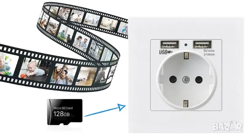 Стенният контакт с шпионска камера е гениално и дискретно решение за наблюдение на помещенията, което предлага перфектна комбинация от функционалността на обикновения стенен контакт и усъвършенстваната технология на камерата за наблюдение.