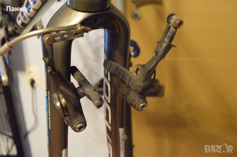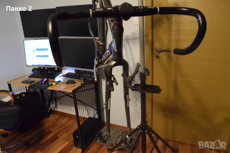 Колело се продава в следният вид от снимките. Рамката е с размер L, като вертикалната тръба е 56см(измерена от центъра на средното до края на тръбата), а хоризонталата тръба е 54см (измерена център-център). Вижда се от снимките че фреймсета е с много запазена боя и без никакви ремонти или подбито. В комплекта са включени курбели FSA 50/36 172.5мм(като среднoто движение трябва да бъде заменено с ново), вилкови чашки FSA(ще имат нужда от един нов лагер който ще струва 1-2 лева), кормило 44см, Лапа 100мм, седалково колче 27.2мм., декланшор Shimano