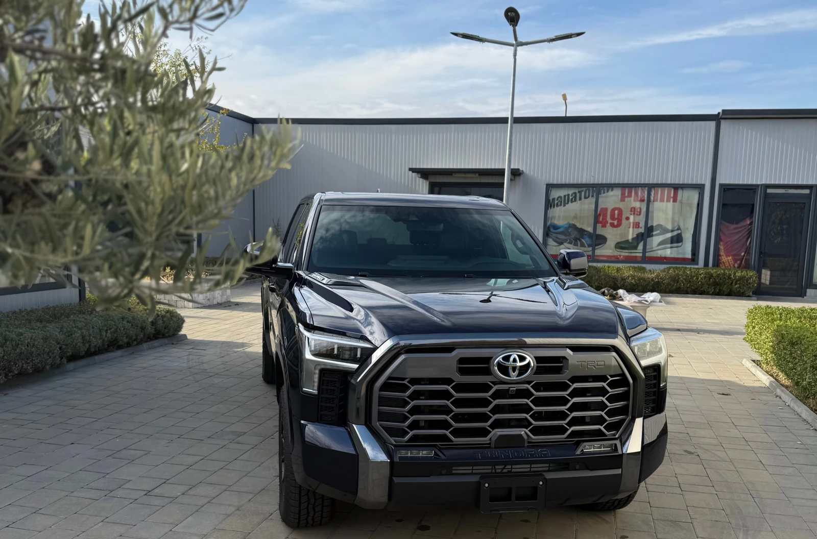Налична в нашия шоурум! Готова за регистрация! Преминат Технотест! Toyota Tundra TRD Pro 2025 ЛИЗИНГ! ! ! ! Поръчков автомобил! Фабрично защитно фолио 3м на цялата предница! Панорамен покрив Подгреви и отзад Камера в огледалото за обратно виждане Черен интериор със син конец 18-инча Ковани алуминиеви джанти BBS Алуминиево подсилено композитно легло 120V/400W AC електрически контакт и LED светлини Автоматично регулиращи се LED фарове с LED DRL Решетка TOYOTA с LED Light Bar TRD Алуминиева защитна плоча 14-инча Toyota Audio Multimedia Съвместимост с Apple CarPlay и Android Auto JBL 12 високоговорителя със субуфер и усилвател TRD Pro SofTex кожани седалки 8-посочна електрическа шофьорска седалка Седалка за шофьор с двупосочна електрическа лумбална част Електрически накланящ се/плъзгащ се панорамен покрив i-FORCE MAX Twin-Turbo V6 Hybrid, DOHC 24V с двоен VVT-i и електрически Мотор/генератор, 436 к. с. 10-степенна автоматична кутия с последователно превключване Избор на режим на шофиране с режими TOW/HAUL, Избор на множество терени и контрол на обхождане 4WDemand Part-Time 4WD w/Elec Controlled Трансферна кутия и електрическо заключване на задния диференциал TRD Pro Off-Road окачване с амортисьори FOX Toyota Safety Sense 2. 5: Предварителен сблъсък Система с разпознаване на пешеходци Динамичен радар круиз контрол Предупреждение за пресичане на лента с асистент за управление Асистент за проследяване на лентата Асистент за пътни знаци Multi-terrain monitor Автоматични дълги светлини Камера 360 Монитор за мъртва точка BSM Двузонен климатроник Предни седалки отопляеми с вентилация Памет на шофьорската седалка Подгрев на волан С право на данъчен кредит Максимален капацитет на теглене около 12 000 lb (~5 443 kg) под подходяща конфигурация Електрическа задрата врата с smart switch и Knee-Lift помощ за отваряне/затваряне Алуминиево усилено ремарке с LED осветление и контакт 120V / 400W в багажното пространство За контакти 0888 384757 0893 388320