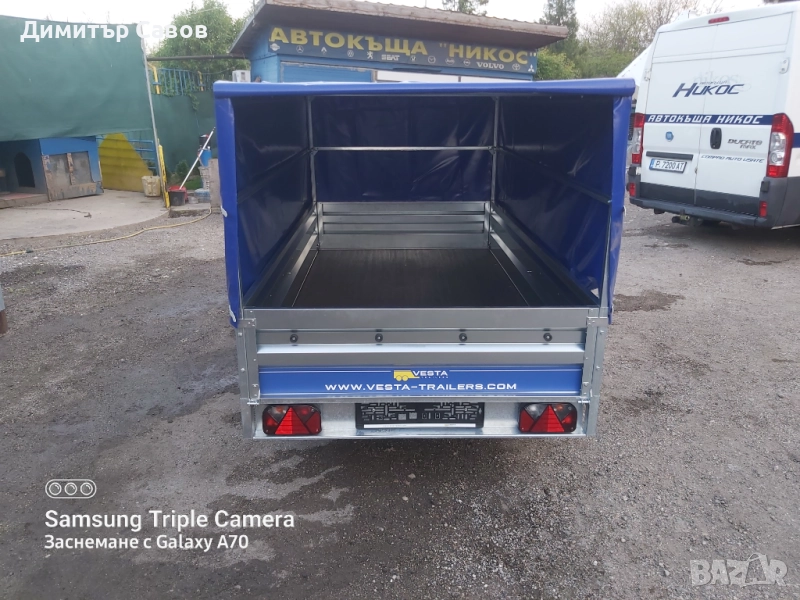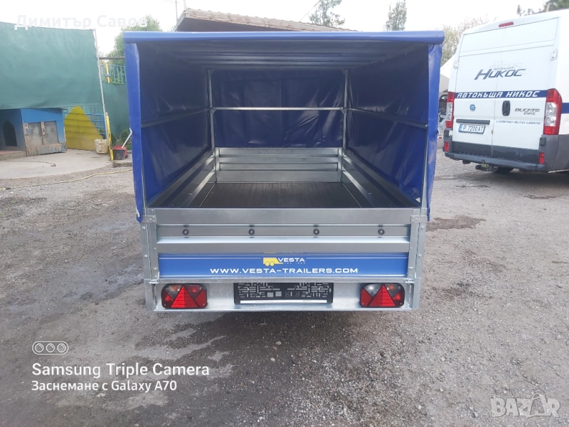 Туристическо, самосвално ремарке VESTA LIGHT 25 с брезент и шпригли. Общо тегло 750kg от фирма VESTA Сърбия.