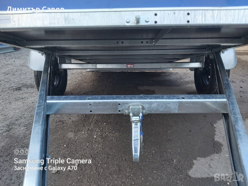 Изключително стабилна, заварена конструкция от 3 мм стомана. Рама и канати горещо поцинковани. Независимо торсионно окачване на ф-ма KNOTT, под от многопластов водоустойчив шперплат. Сваляем преден и заден капак. Ел. инсталация 12V с 7 полюсен куплунг, вкл. маневрено колело и скоба. ЧИСТО НОВО РЕМАРКЕ!!! ЦЕНАТА Е С ПЛАТЕНО ДДС!!!