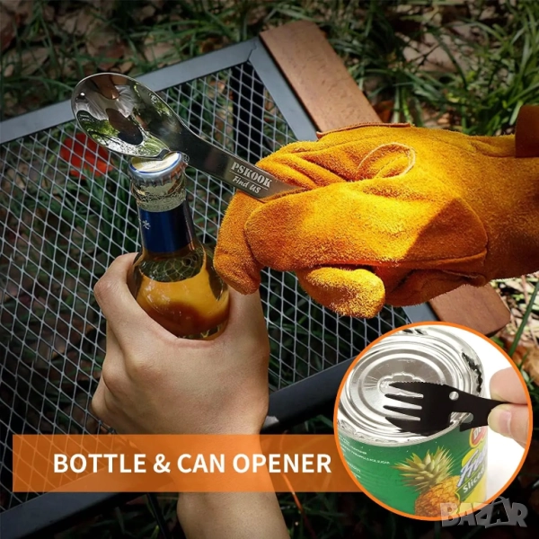 ★ Универсален: Вилицата е пълен 5-в-1 прибор с отварачка за консерви и бутилки, лъжица, вилица и нож, идеален за дейности на открито.