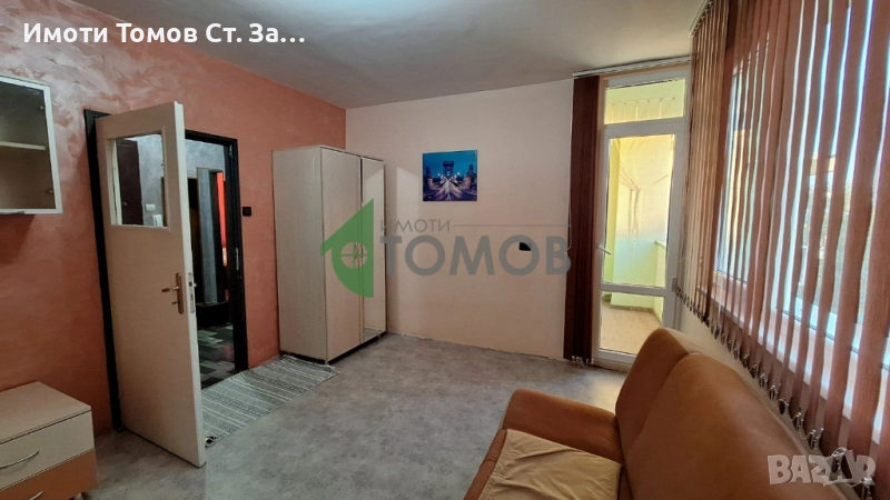 Имоти Томов Стара Загора представя на Вашето внимание топъл двустаен апартамент с площ от 45 кв.м. в кв. Три Чучура-юг. Жилището е с изцяло западно изложение и се намира на осми етаж в осеметажен саниран блок.