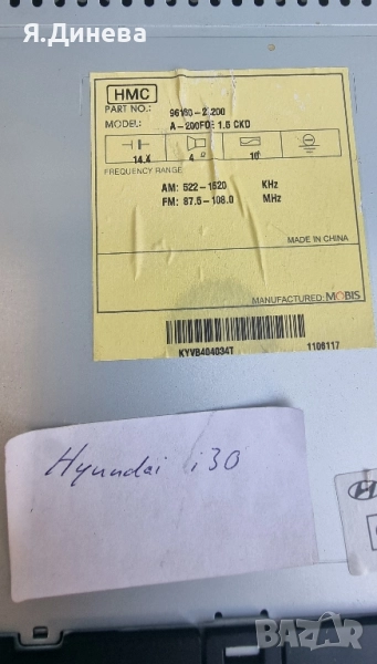 Продавам касетофон за Huyndai i30 в добро външно състояние тестван и работещ липсва му едното копче и кабелите . Внос от Германия.