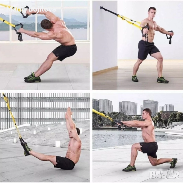 Тип продукт: TRX уред; Употреба: Домашна, Професионална; Калъф: Да; Допълнителни ленти: Да; Удобни ръкохватки; Цвят: Основен черен; Здрава изработка; Лесен за окачване; Регулируеми ленти; Компактен уред; Позволява тренировки със собствено тегло; Подходящ с цел и за лечение.