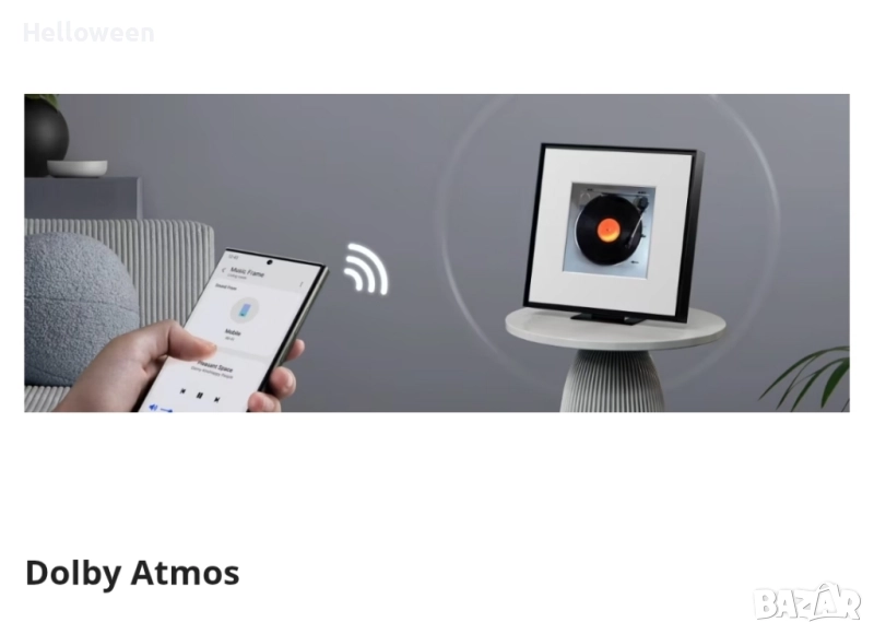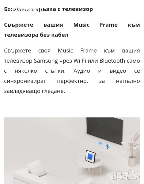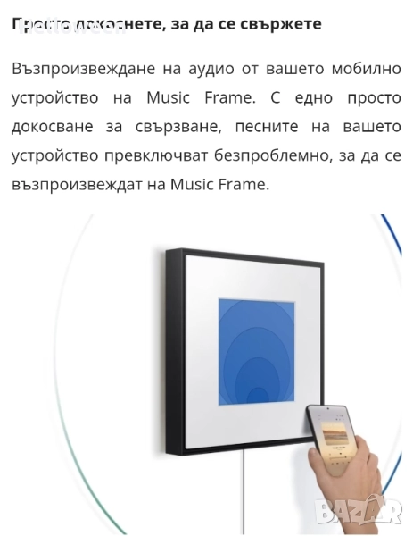 2 години гаранция - до 15.01.2028г. На последната снимка се вижда цената в магазина така че не ми предлагайте несериозни оферти. Свържете вашия Music Frame към телевизора без кабел. Вашето дистанционно управление за телевизор Samsung не е само за телевизор. Използвайте го, за да контролирате ключови функции на Music Frame, като стартиране, сила на звука и звукови ефекти. Украсете музикалната си рамка с цветна рамка. С Apple AirPlay можете да се наслаждавате на любимата си музика или подкасти от вашия iPhone или iPad. Просто докоснете иконата AirPlay на вашето Apple устройство, за да се свържете с Music Frame. SpaceFit Sound Pro издига звука на SpaceFit до нови висоти. Music Frame анализира стаята и адаптира звука на съществуващото пространство. Технологията Q-Symphony позволява на телевизора и Music Frame да работят заедно, без някой от високоговорителите да бъде деактивиран. Dolby Atmos. Безжично поточно предаване на музика. С дизайн на рамка за снимки този високоговорител се вписва красиво в интериора на вашия дом. Съчетайте го с вашия стил, с персонализиран арт панел.