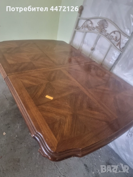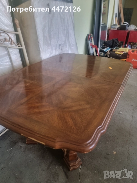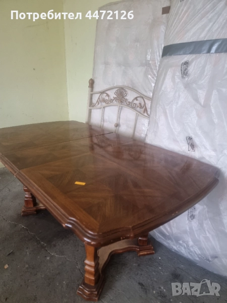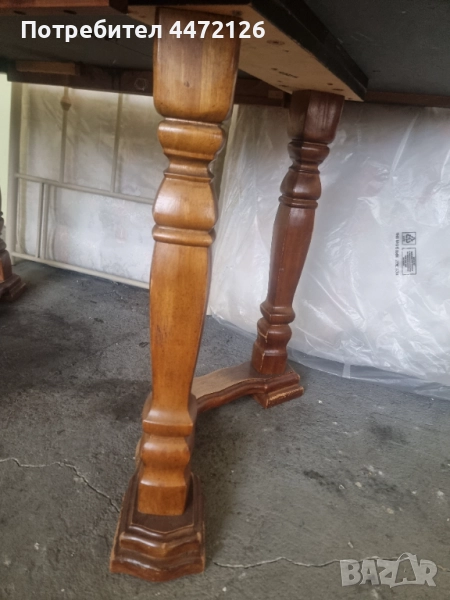 Масата е внос от Европа, има малки забележки, но е здрава. 1.03лм широка, 1.5лм дълга, става и на 1.80лм