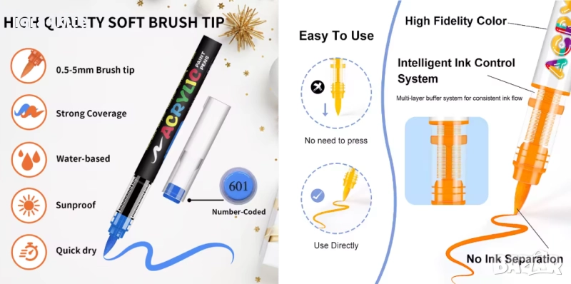 ТОП ХИТ! Акрилни Четкови Маркери за Рисуване и Боядисване в 12, 24, 48, 60, 72 и 120 цвята