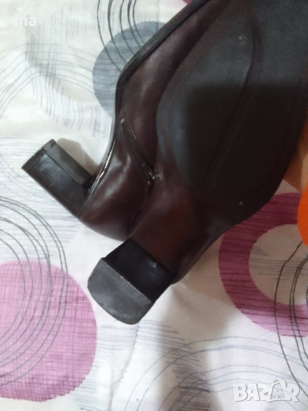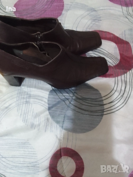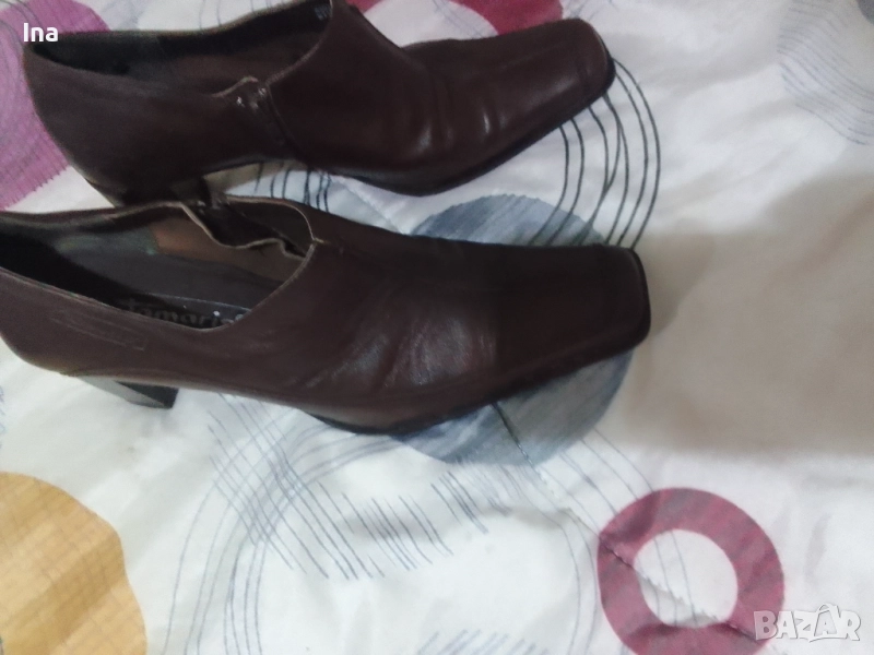 Обувките са от естествена кафява кожа, без забележки.