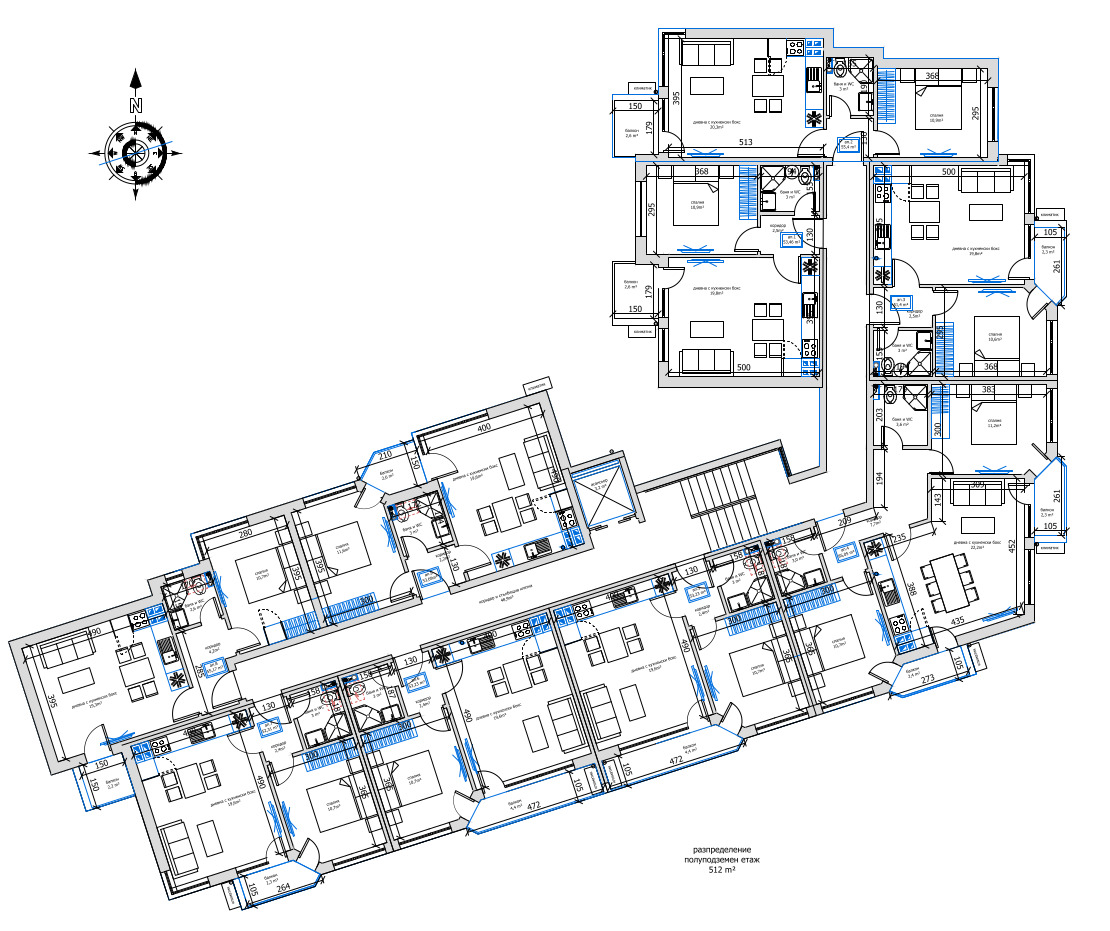 Просторен тристаен апартамент, състоящ се от дневна с кухненски бокс, две спални, баня с тоалетна (или две санитарни помещения според разпределението), коридор и тераса/тераси.