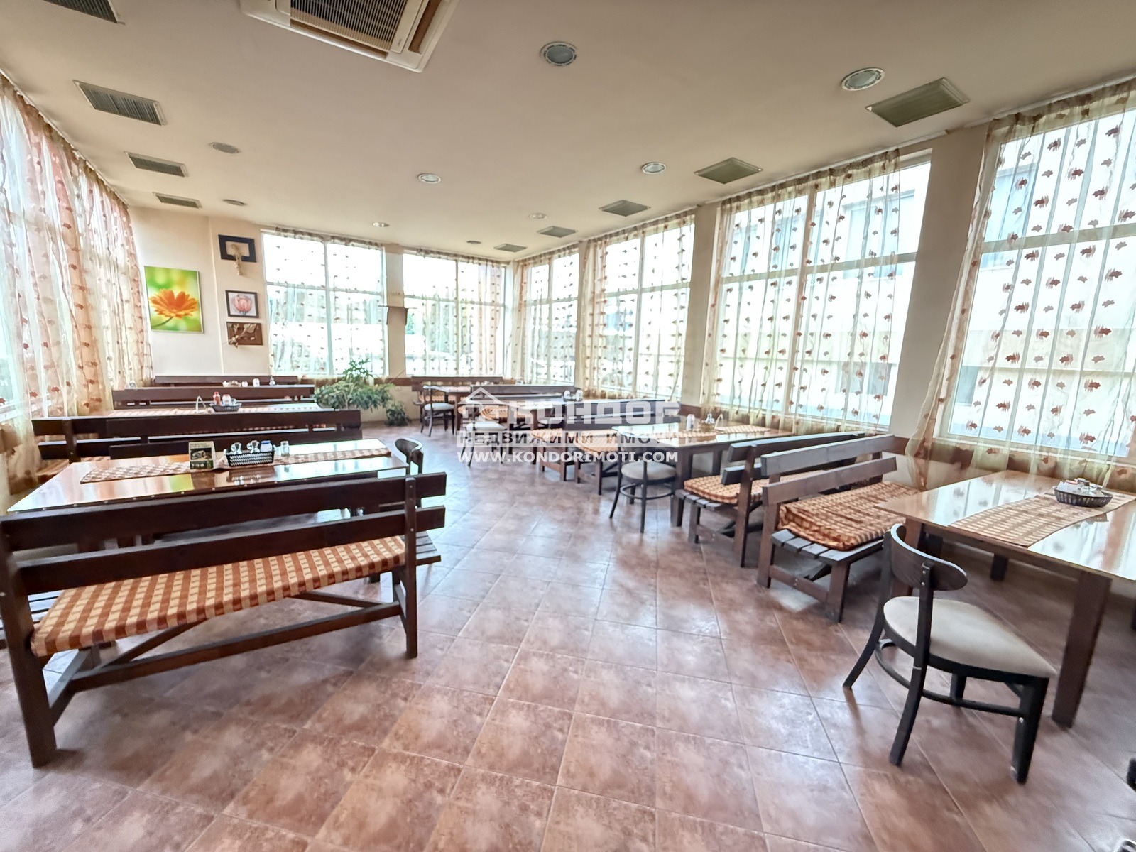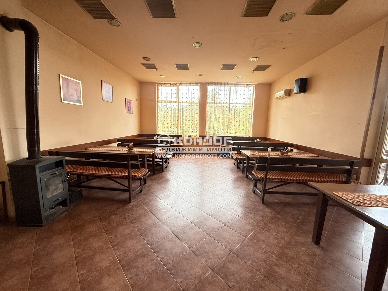 Оферта 68060: Предлагаме ви напълно функциониращ ресторант с обща площ от 312кв, 70кв навес и капацитет 150 места, разположен в индустриалната зона на Тракия, подходящ за целогодишна работа. Обекта разполага с 3 зали , голяма кухня 50кв, склад, съблекалня, 2 санитарни помещения. Разполага и с голяма градина с приятна атмосфера и зеленина - идеална за летния сезон. Две от залите имат камини. Подовите настилки са гранитогрес. Професионална кухня, напълно оборудвана и с изградена вентилация и аспирация. Височина на обекта 3.80м. Обекта разполага с всички необходими документи и разрешителни за продължаване на дейността. Ресторанта е в отлично състояние и се продава с цялото оборудване и обзавеждане. Подходящ е както за продължаване на съществуващия бизнес, така и за нов концептуален проект.
