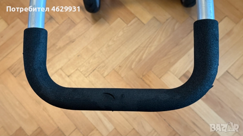 В задната страна под седалката има отвор и лост, и там е прикрепена една дръжка (която за транспортиране може и да се изважда.). На Тази дръжка има "Става", на която може да се регулира ъгълът, за да е най-удобно на бутащият количката човек.