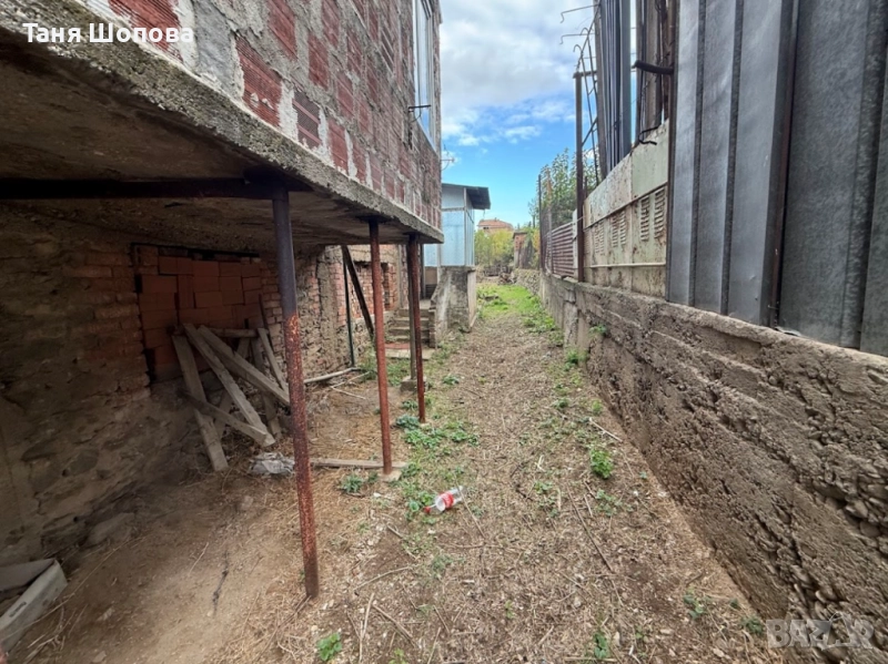 Агенция за недвижими ИМОТИ ШОПОВА предлага на Вашето внимание двуетажна масивна жилищна сграда с гараж за продажба в гр. Петрич. Урегулираният поземлен имот е с площ 613 кв.м., продава се ½ от парцела, равняващи се на 306 кв.м.. Чистата жилищна площ на всеки етаж е 60 кв.м.., ведно със съответните идеални части от общите части на сградата и правото на строеж върху мястото. Жилищна сграда е на калкан от северната страна, с разгъната застроена площ 180 кв.м.. Първи етаж се състои от кухня, всекидневна и спалня. Във втори етаж са разположени кухня, всекидневна и спалня. Гараж с площ 30кв.м.. Конструкцията на сградата е масивна , разполагаща с мазе. Имота се намира в тих и спокоен район за живеене.